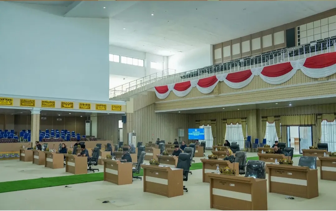 Rapat berlangsung di ruang rapat paripurna lantai II, Gedung DPRD Kabupaten Mesuji, pada Jumat (6/4-2026).